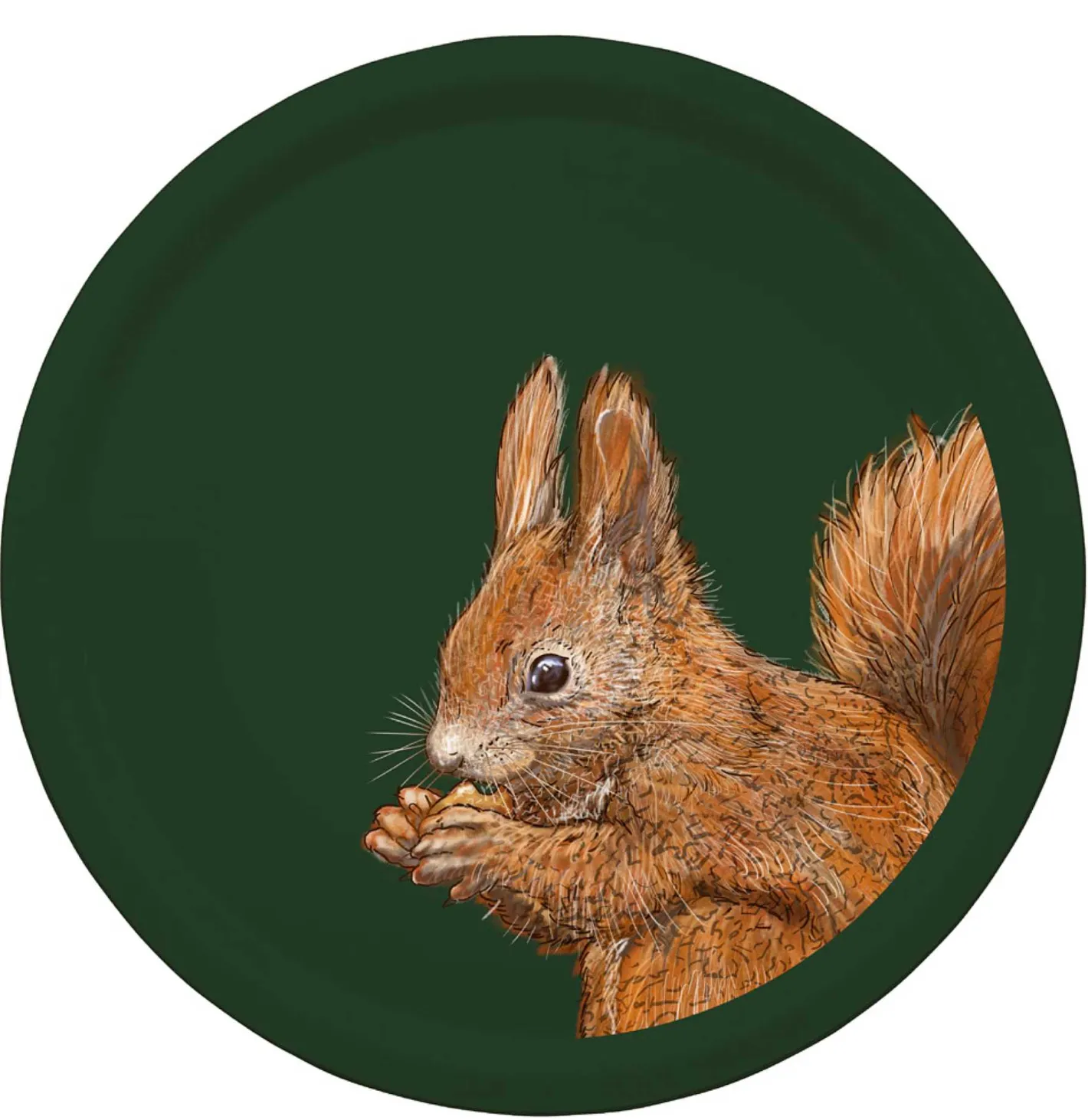 Halcyon Days Birchwood Trays*Woodland Wildlife Squirrel Round Birchwood Tray