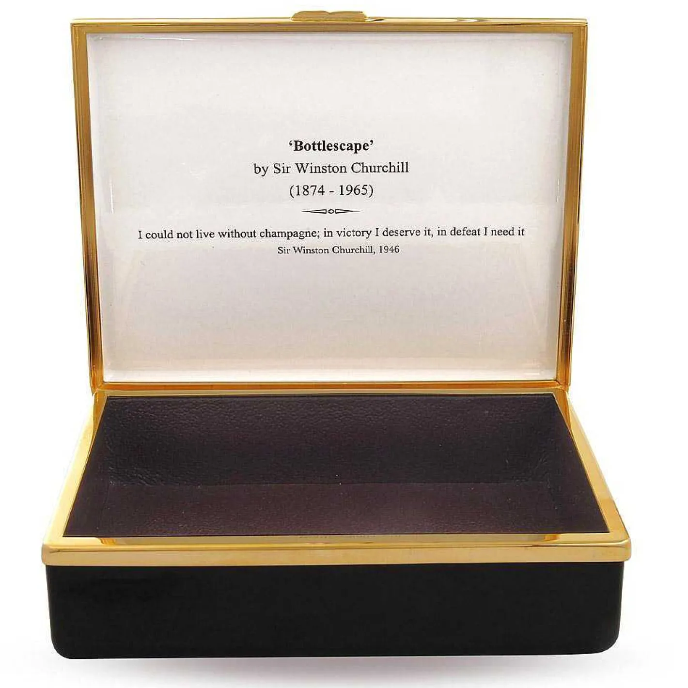 Lifting The Lid Of The Box Reveals Another Of Churchill’S Most Memorable Lines; “I Could Not Live Without Champagne; In Victory I Deserve It, In Defeat I Need It”.
