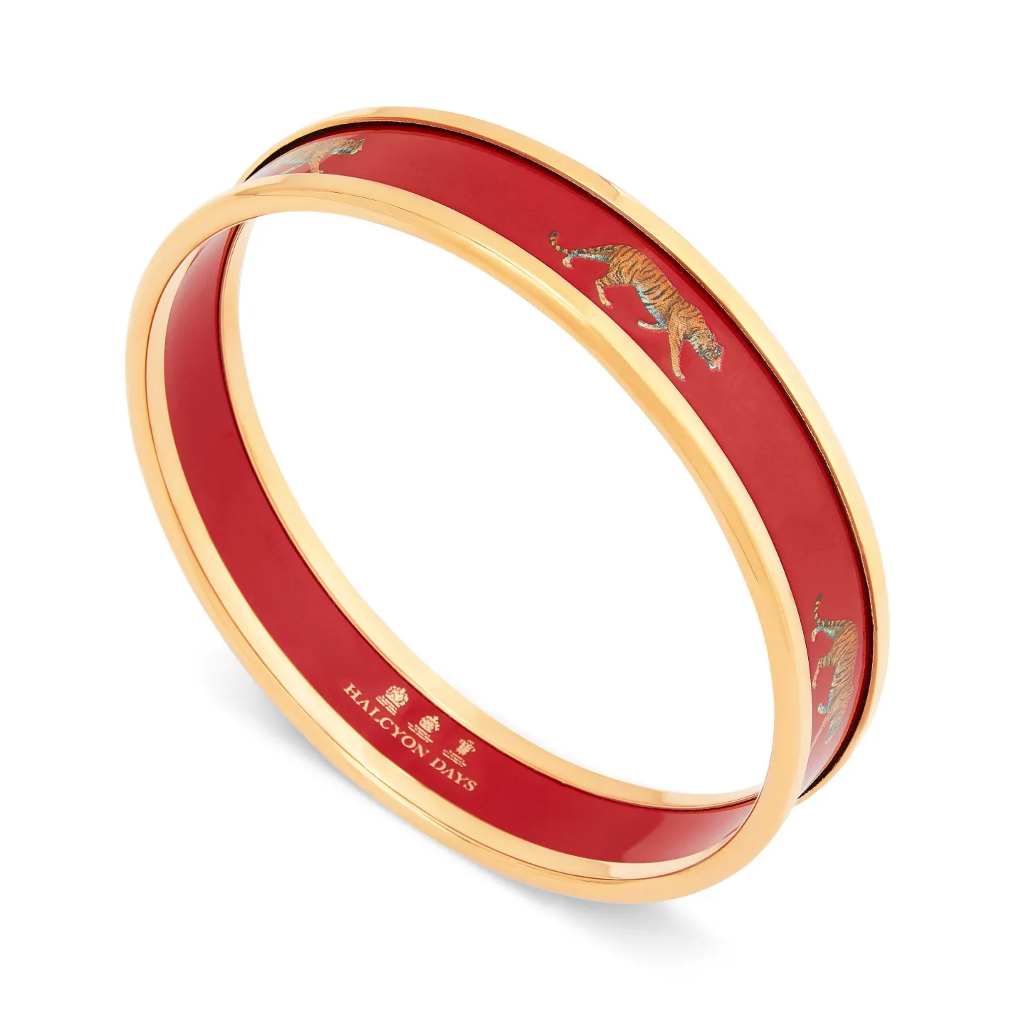 It Features Intricately Drawn, Stalking Tigers Set On A Deep Red Background And Is Finished With 18Ct Gold Plated Raised Rims.