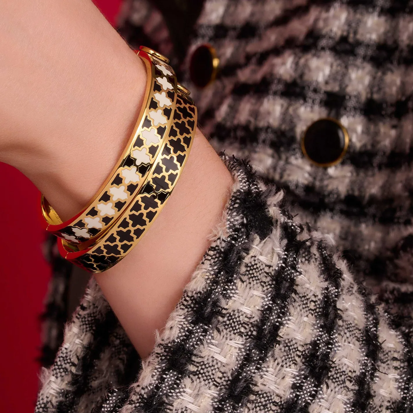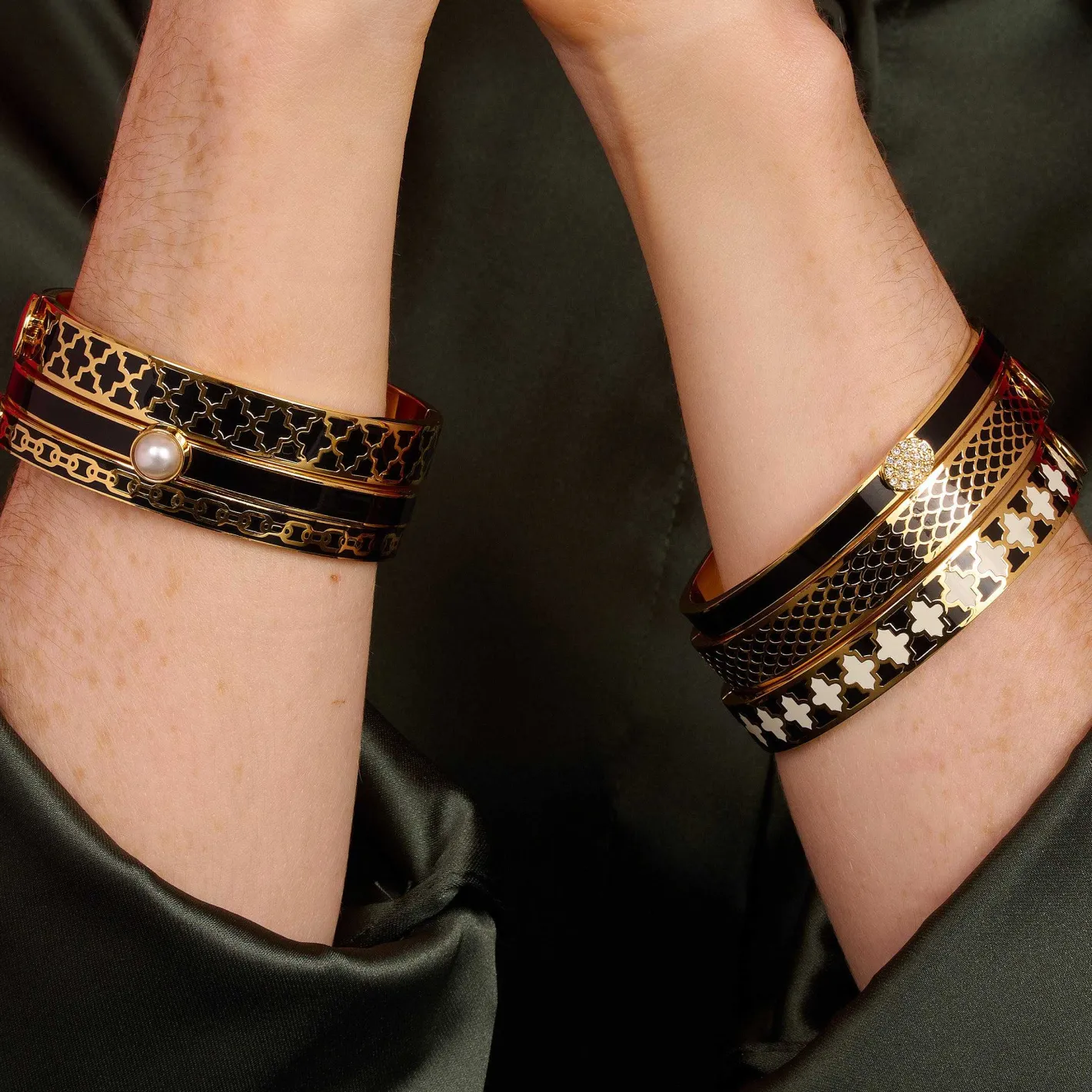 The Agama Black, Cream & Gold Enamel Hinged Bangle Measures 10Mm Wide And Is Easy To Match, Feminine To Wear And The Perfect Accessory For Any Occasion, Either As A Single Item Or Stacked With Other Bangles.