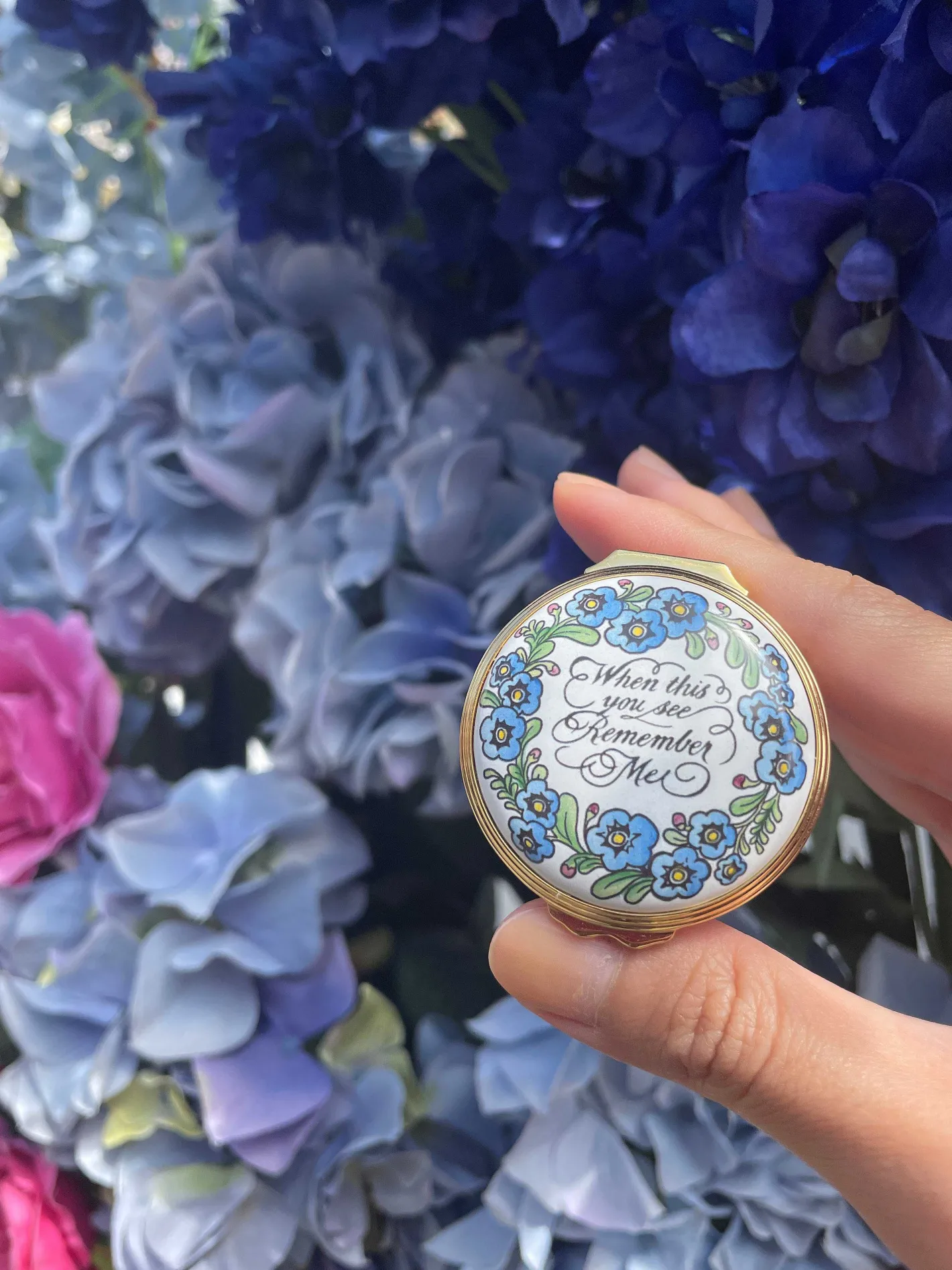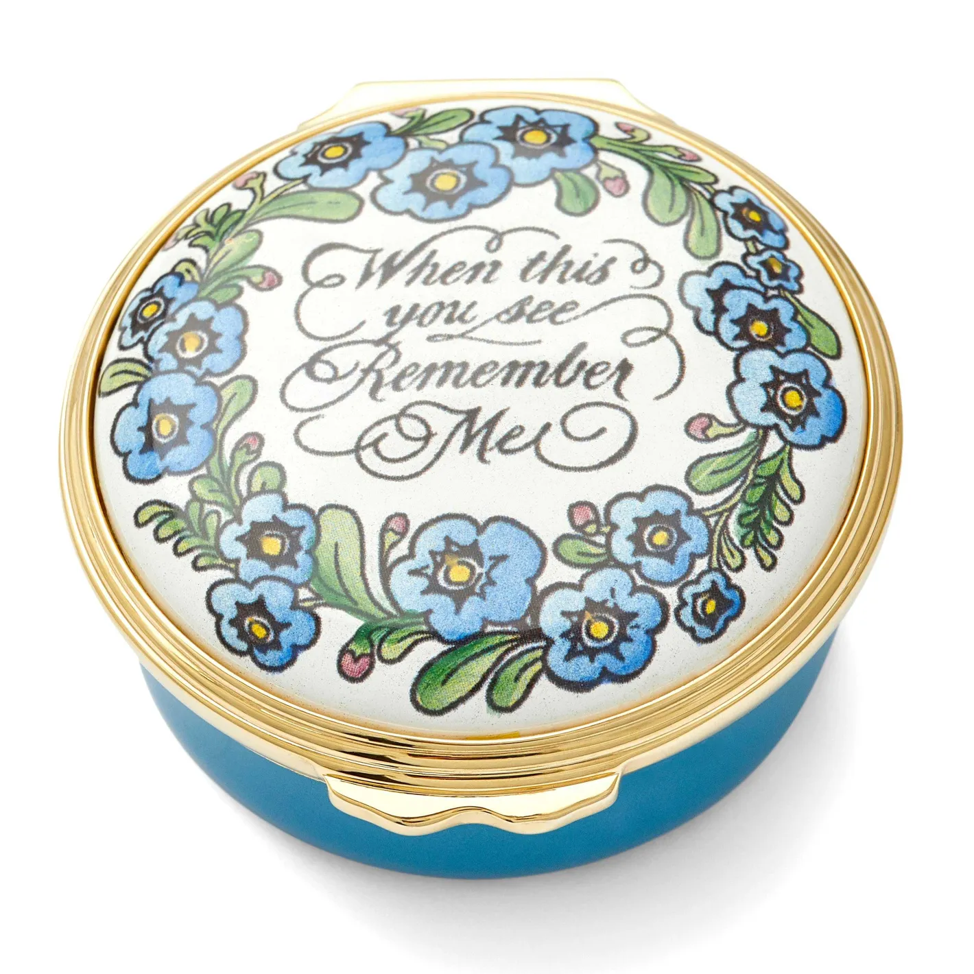 With A Calming Blue Base And A White Lid Adorned With Delicate Florals And The Sentiment “When This You See, Remember Me,” This Enamel Box Is A True Embodiment Of Remembrance And Affection.