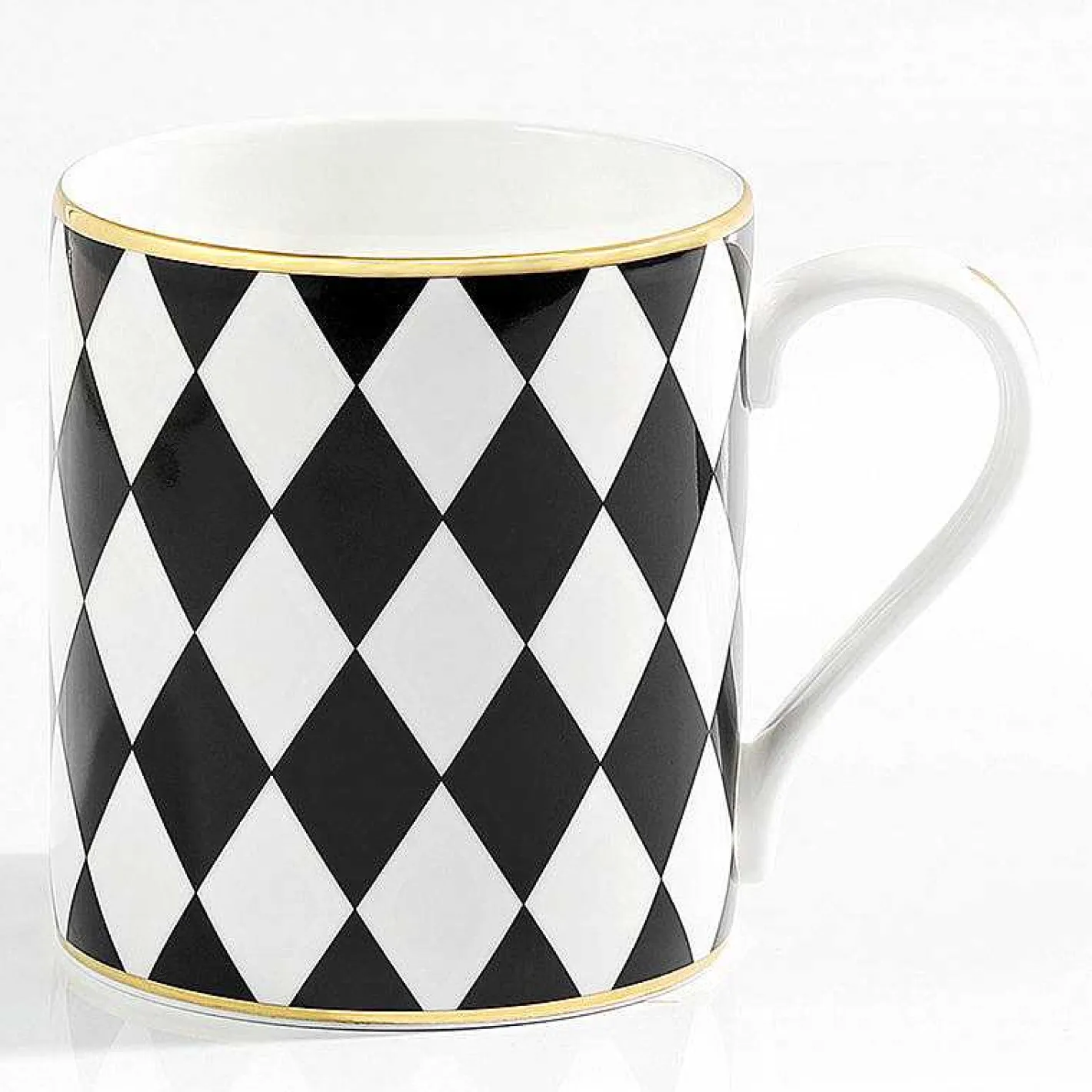 This English Fine Bone China Mug Features Our Checkerboard Parterre Design In Black And White. A Refined Piece For Sophisticated Sippers, It’S Been Hand Gilded For An Opulent And Luxurious Finish.