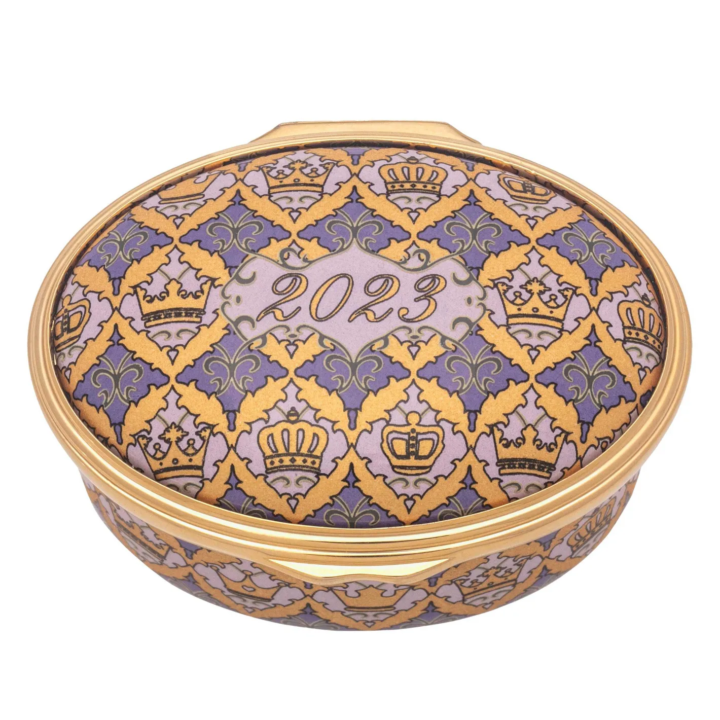 Our 2023 Annual Year Box Features A Crown Trellis Pattern Set On An Elaborate Lavender Background. It Constitutes A Symbol Of Continued Reverence For Our Sovereign And The British Monarchy.
