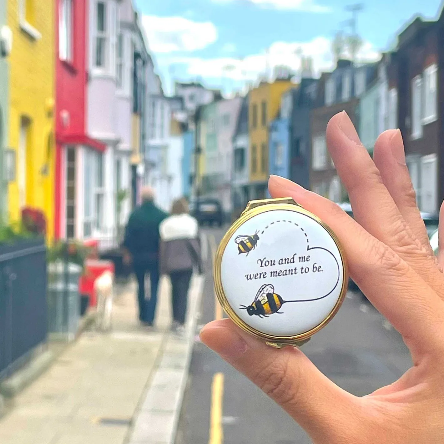 Buzzing Bumblebees Fly In Heart Formation Around The Sentimental Saying That Sits In The Centre Of This Enamel Box.