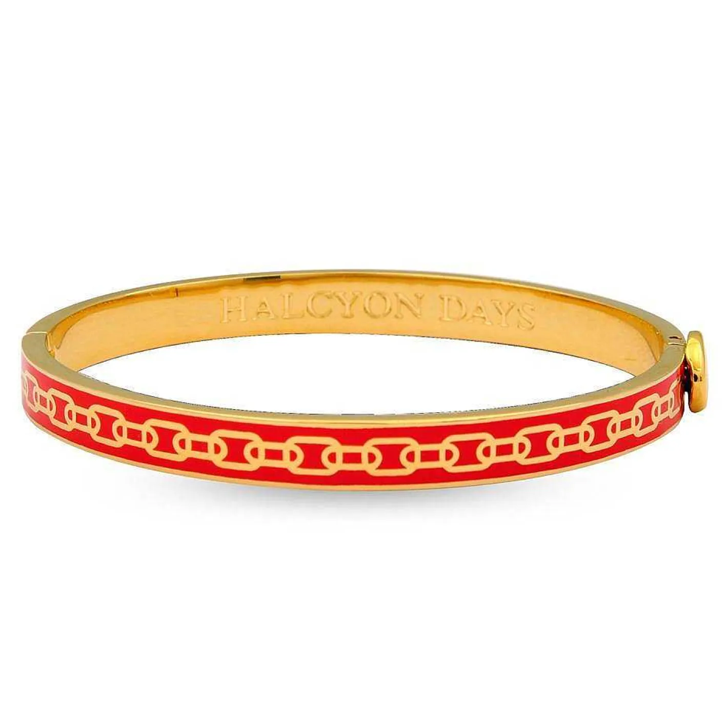 Crafted From Brass And Plated In 18Ct Gold, This 6Mm Skinny Bangle Features Contemporary Chain Design With Red Enamel Base.