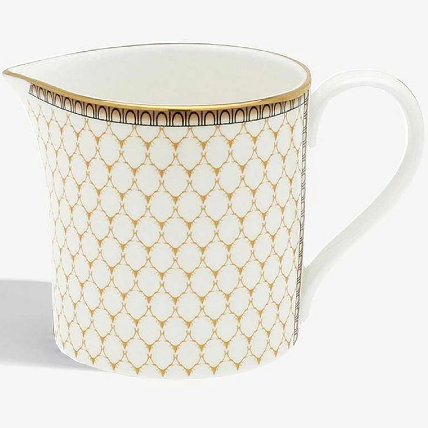 This Elegant English Fine Bone China Cream Jug Features The Intricate Trellis Pattern On Ivory.