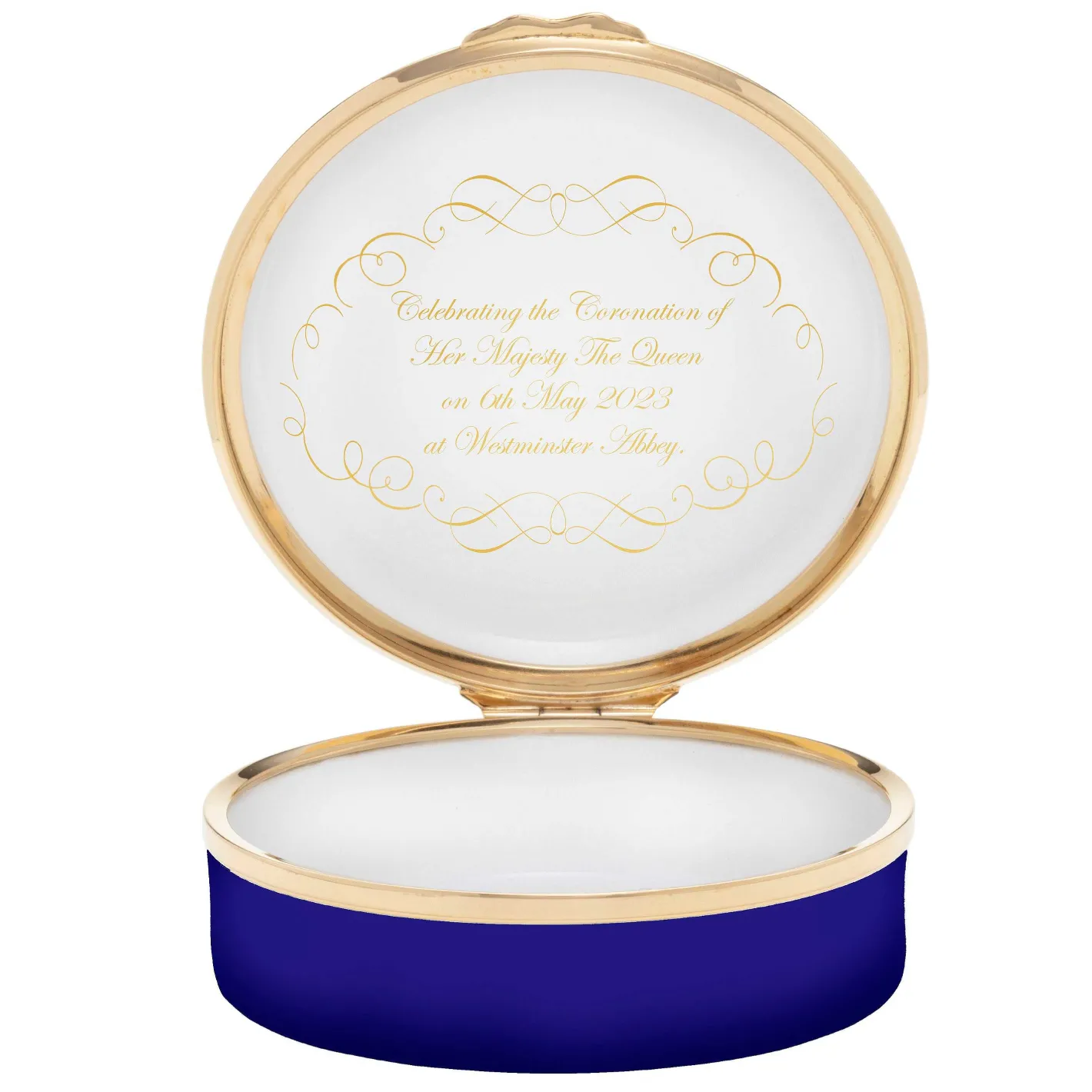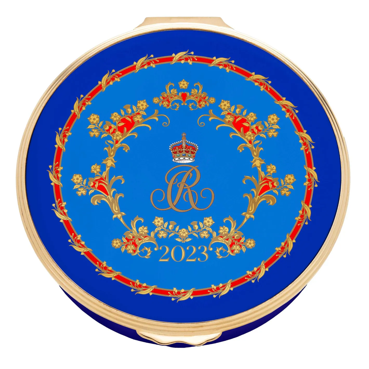 This Beautiful Collection Has Been Specially Designed To Honour And Celebrate Her Majesty Queen Camilla. Each Piece Depicts The Four Flowers Of The Realm In Gold: Roses, Thistles, Daffodils, And Clover, As Well As Lily Of The Valley. The Floral Scroll Detail Is Complemented By A Patterned Cerulean Blue And Red Background, All Of Which Surrounds Her Majesty’S Royal Cypher And The Year Of The Coronation.