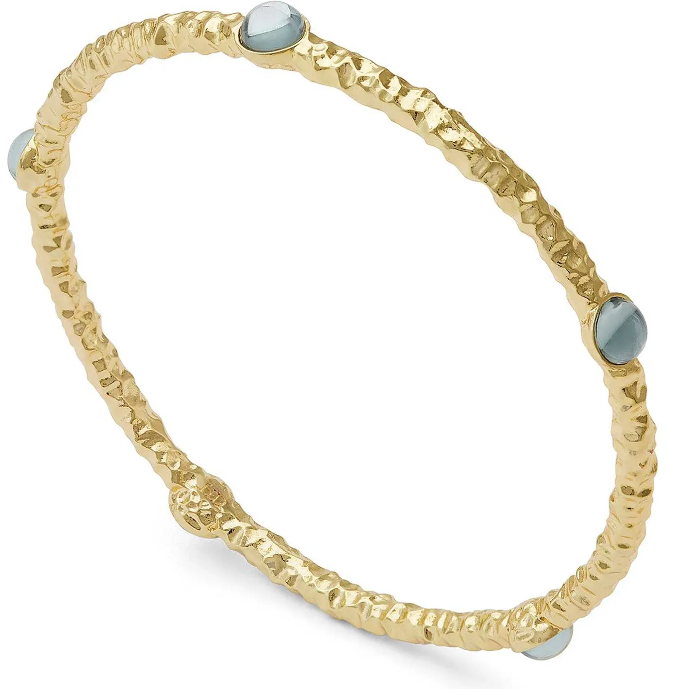 This Cabochon Bangle Orbits Perfectly Around Your Wrist With One Simple Push. A Mini-Solar System Of 5 Aquamarine Cabochons Circulate The 18Ct Gold-Plated Band; This Piece Is Designed To Be Worn Solo For A Sleek, Understated Look OR Stack With Our Other Bangles For Statement Accessorising.