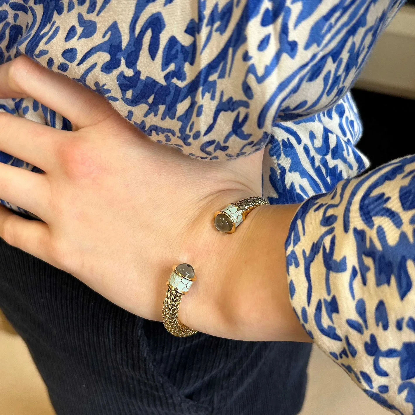 Halcyon Days Torque Bangles*Minoan Torque Aquamarine & Gold Bangle