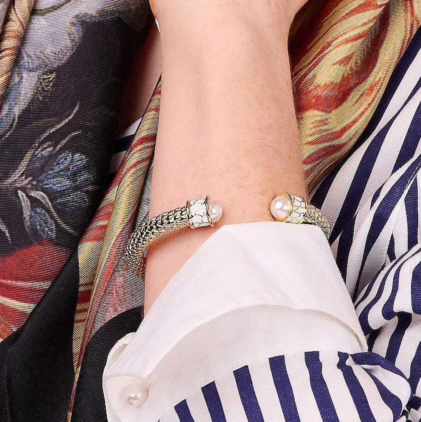 Halcyon Days Torque Bangles*Minoan Torque Pearl & Gold Bangle