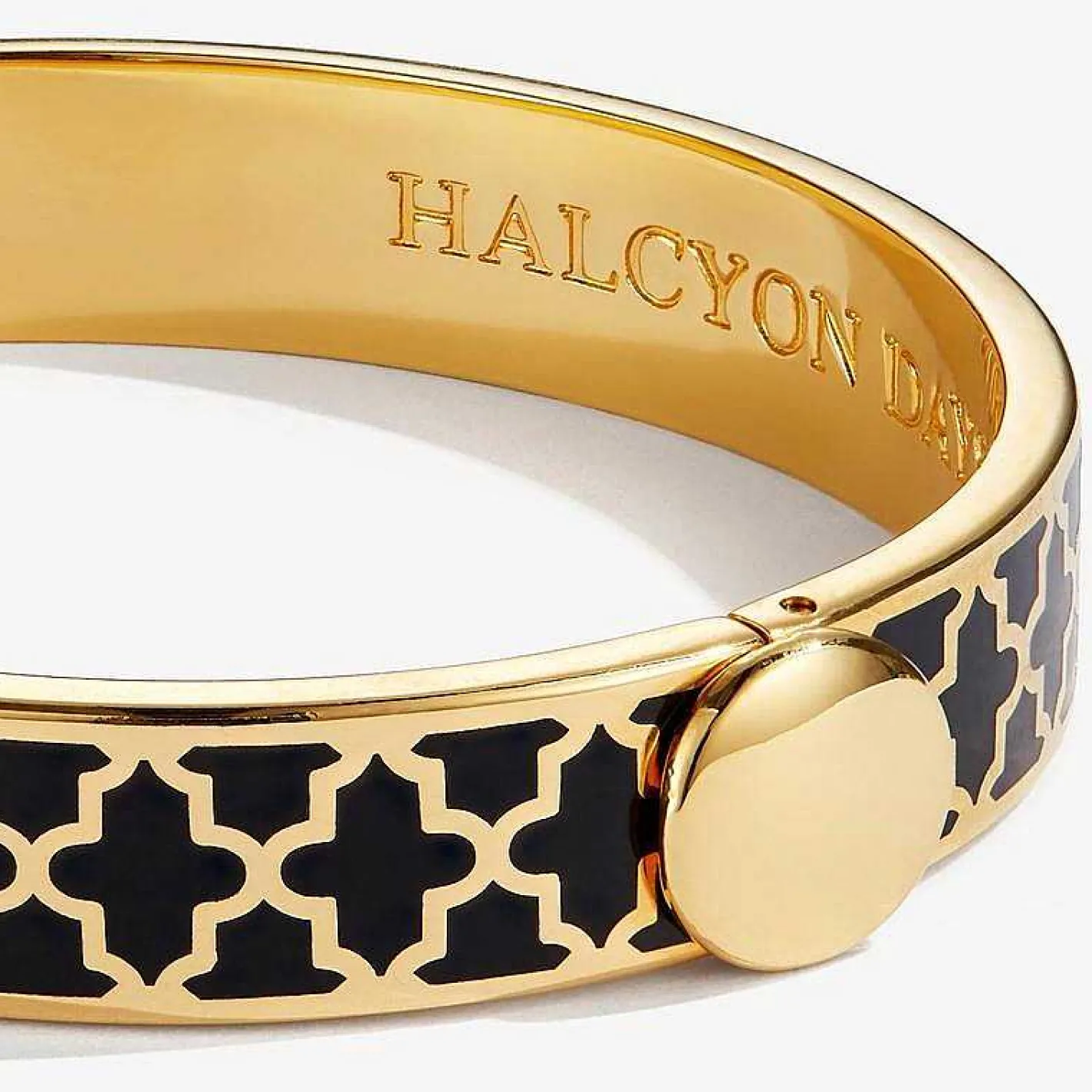 The Agama Black & Gold Enamel Bangle Is 10Mm Wide And 18Ct Gold Plated For An Opulent Finish. Featuring A Hinge Clasp And The Halcyon Days Branding On The Inside, This Timeless Design Looks Fabulous When Stacked With Other Bangles Or When Worn Individually.