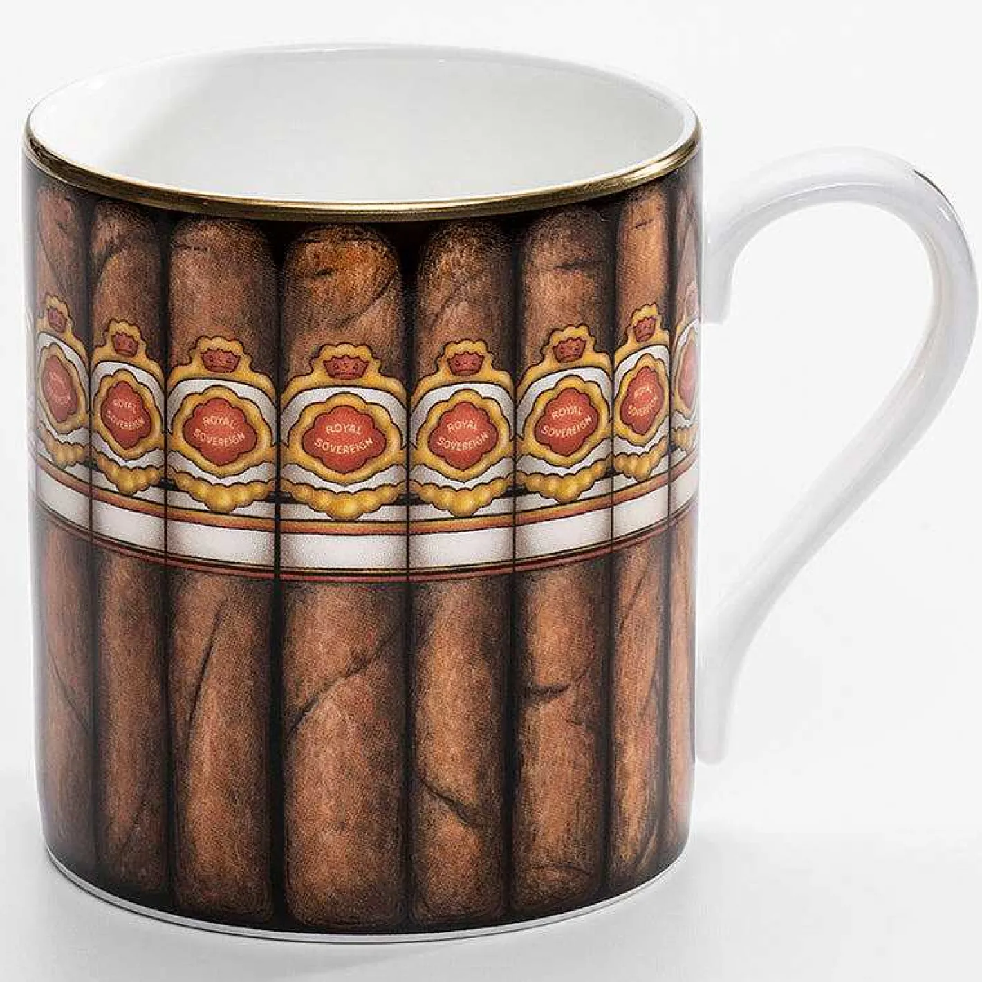 With A 10 Fl Oz Capacity, This Exquisite Mug Is Adorned With A Sophisticated Drawing Of Cigars Encircling Its Form. Handcrafted With Precision By Skilled Artisans In Stoke-On-Trent, England, Each Piece Reflects The Epitome Of British Craftsmanship.