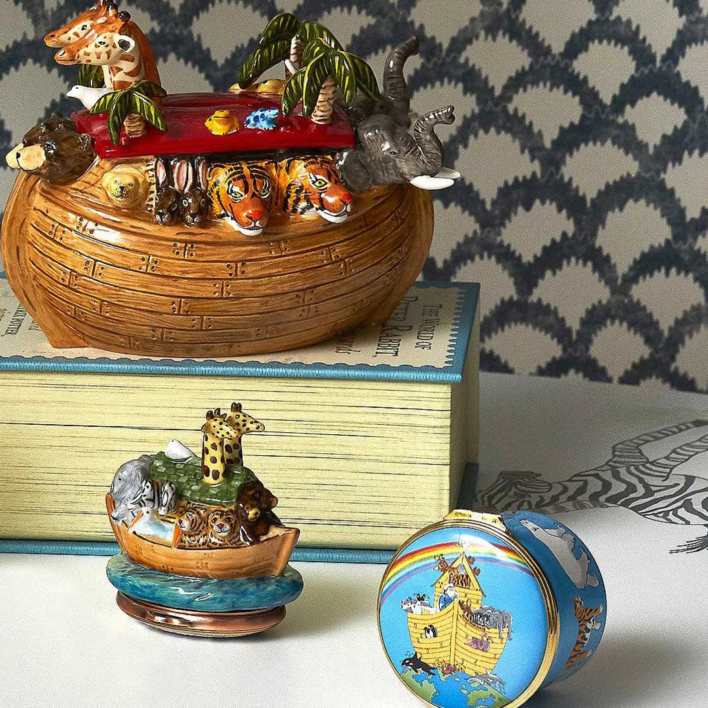 This Collectable And Ornamental Home Accessory Features A Charming Illustration Of Noah’S Ark Against A Blue Base.