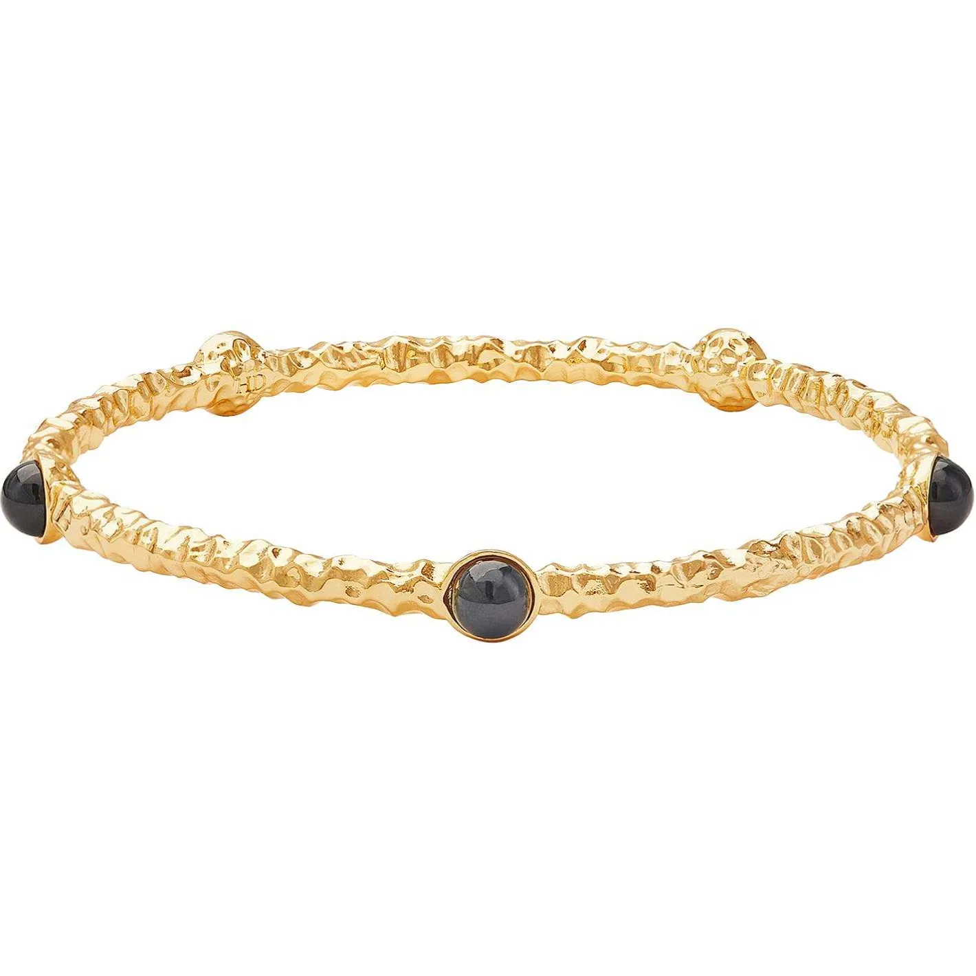 This Cabochon Bangle Orbits Perfectly Around Your Wrist With One Simple Push. A Mini-Solar System Of 5 Black Cabochons Circulate The 18Ct Gold-Plated Band; This Piece Is Designed To Be Worn Solo For A Sleek, Understated Look OR Stack With Our Other Bangles For Statement Accessorising.